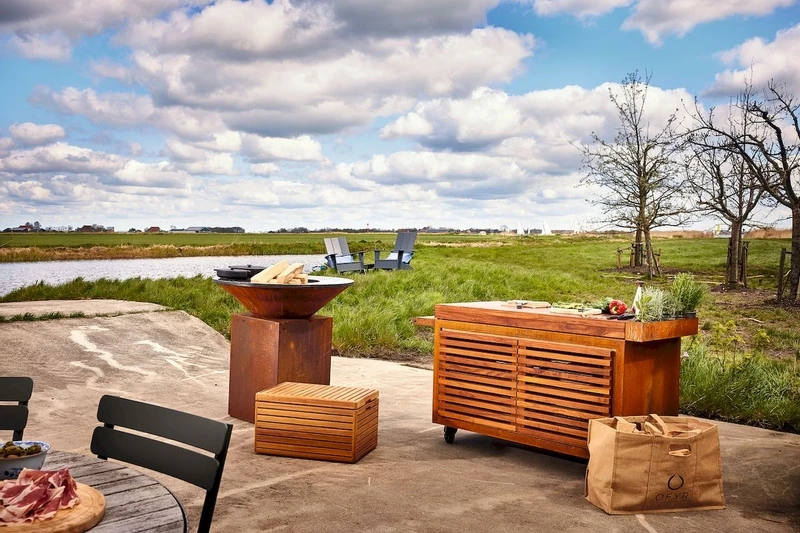 Met de mooie OFYR PRO teakhouten Insert bouw je de opslagruimte van je toestel om tot een open of gesloten kast met handige lades. Zo kun je je spullen overzichtelijk opbergen en sluit je de opening na gebruik netjes af. De Insert is gemaakt van teakhout en naast dat het erg handig is om spullen geordend op te bergen geeft het ook een extra luxe uitstraling. Met de vuurschalen en accessoires van OFYR kook je buiten als een echte pro, in stijl én van alle gemakken voorzien. Lekker hoor!