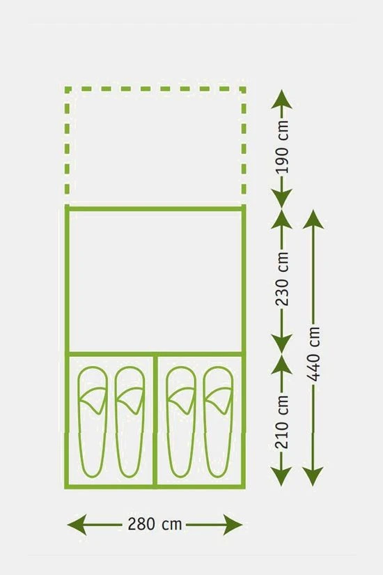 - Het grondzeil heeft een opstaande rand van 25 cm. Zo hou je tocht, vocht en ongedierte mooi buiten de tent!